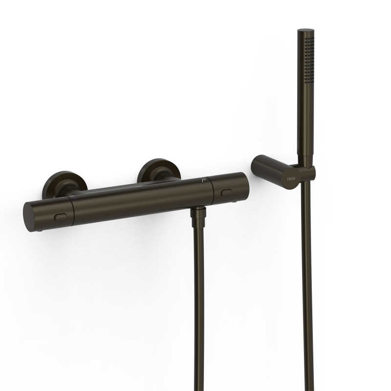 Термостат для душа Tres Over-wall настенный с душевым набором черная бронза