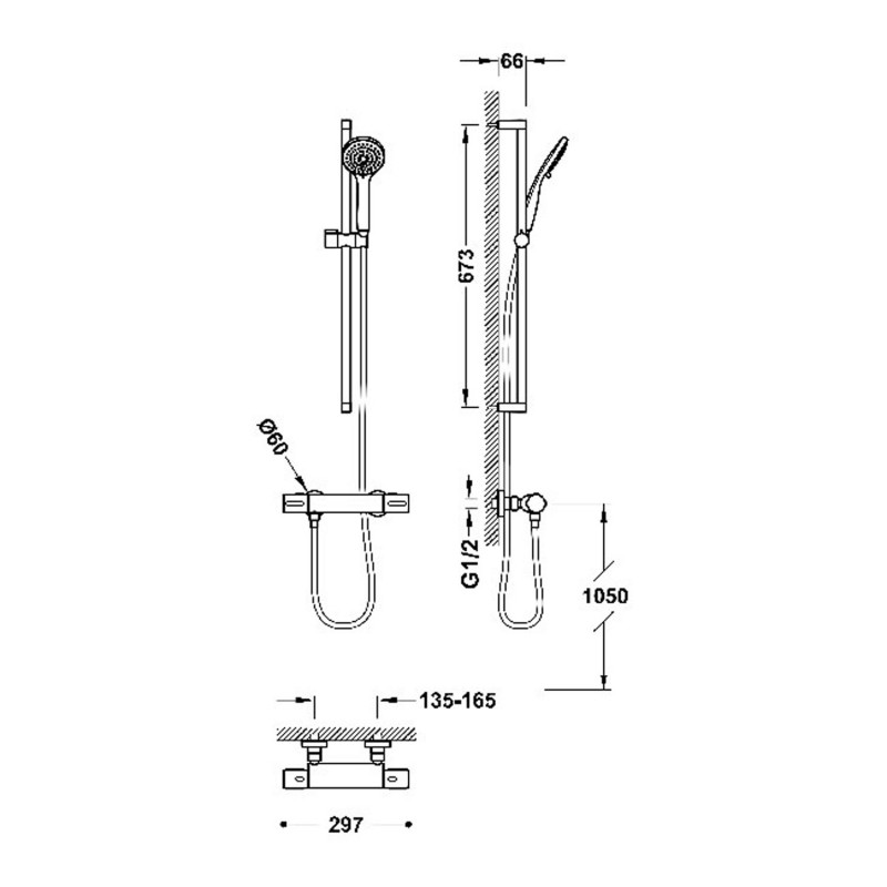 Термостат для душа Tres Over-wall со штангой душевым набором хром 19019601