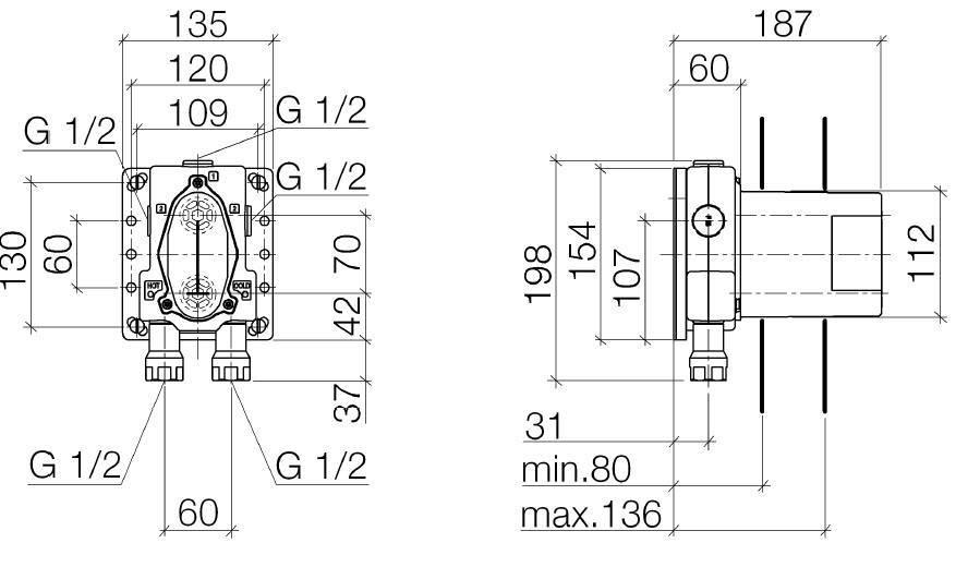 1) Термостат для смесителя Dornbracht скрытого монтажа без регулирования расхода хром