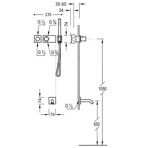 Термостат для ванны Tres Block System с ручным душем хром 20735208
