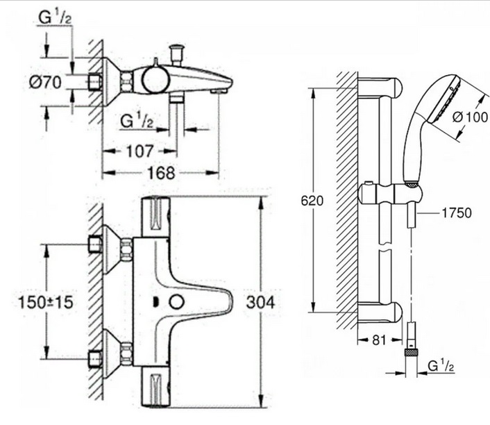 Термостат для ванной Grohe Grohtherm 800 с душевым гарнитуром New Tempesta 100 хром