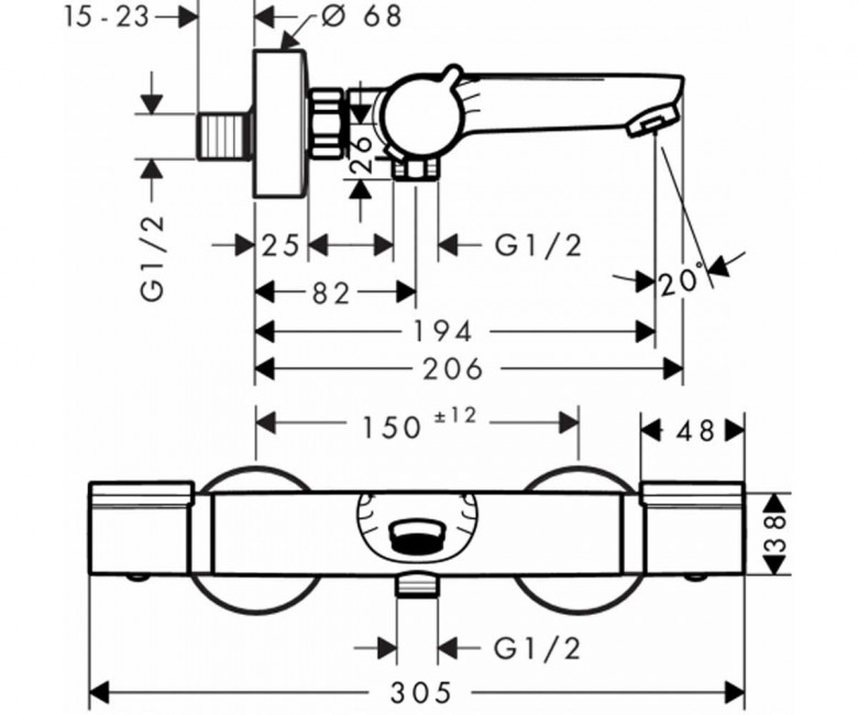 1) Термостат для ванной Hansgrohe Versostat двухвентильный хром