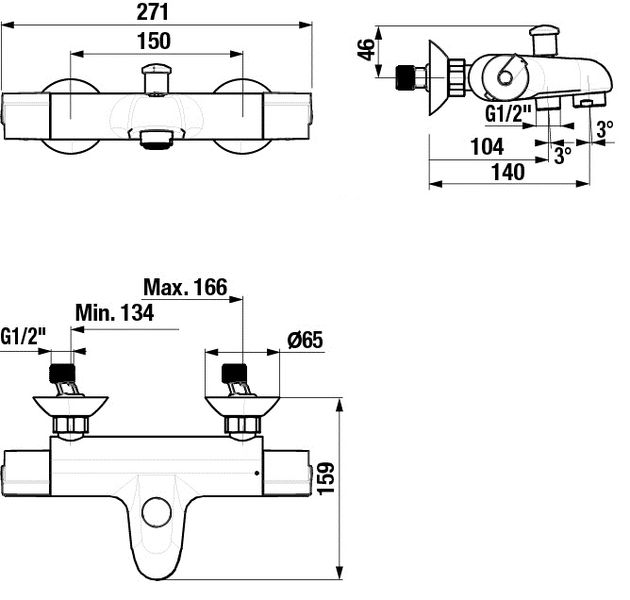 1) Термостат для ванной Jika Deep двухвентильный хром