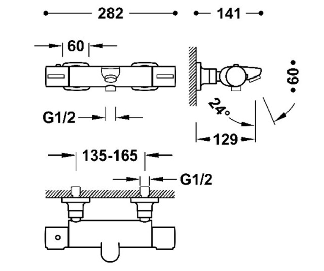 Термостат для ванной Tres Canigo Plus настенный двухвентильный хром