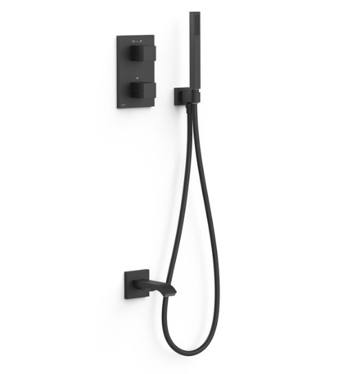 Термостат для ванной Tres Therm-Box на 2 потребителя с душевым гарнитуром матовый черный