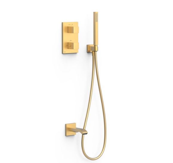 Термостат для ванной Tres Therm-Box на 2 потребителя с душевым гарнитуром матовое золото 00625006OM
