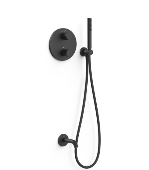 Термостат для ванной Tres Therm-Box на 2 потребителя с душевым гарнитуром матовый черный