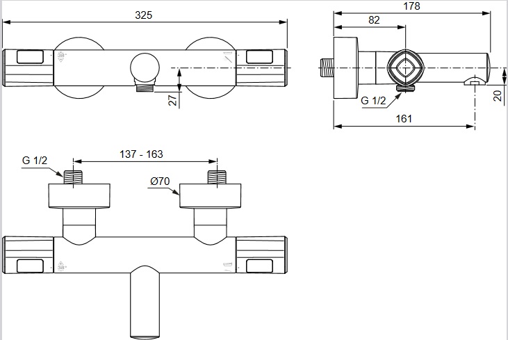 Термостат для ванной Villeroy & Boch Universal Showers двухвентильный матовый черный TVS000035000K5