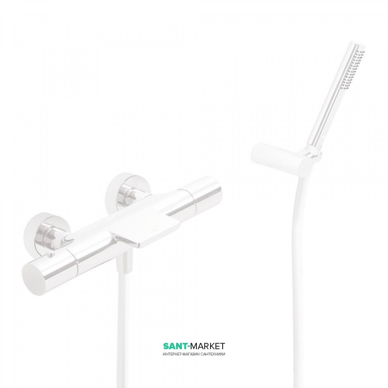 Термостат для ванной Tres Study colors с каскадным изливом и ручным душем белый матовый