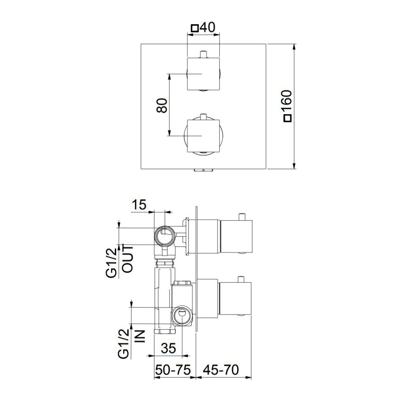 Термостат скрытого монтажа Fiore Spazio Doccia 2 потребителя хром 31CR0913