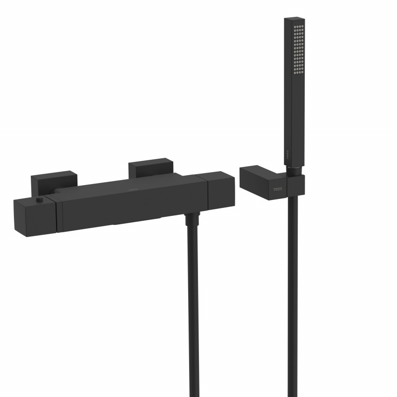 Термостатический смеситель для ванны и душа Tres Cuadro Exclusive с ручным душем черный матовый