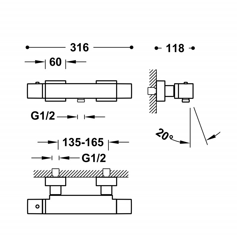 1) Термостатический смеситель для ванны и душа