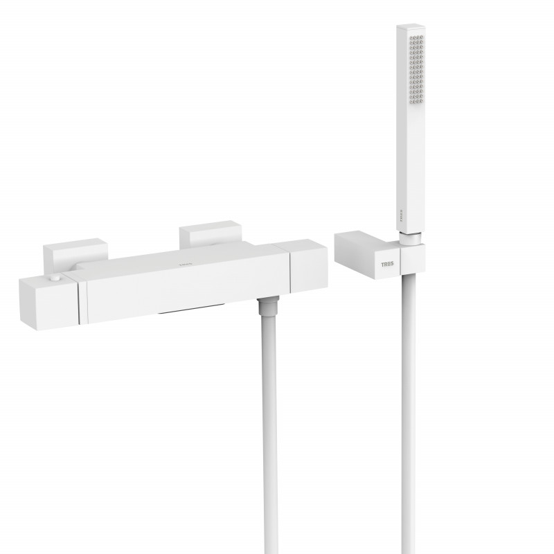 Термостатический смеситель для ванны и душа Tres Cuadro Exclusive с ручным душем белый матовый 007174039BM
