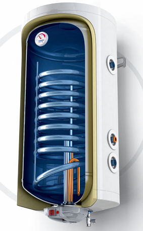 Комбинированный водонагреватель, с возможностью подключения к системе отопления. Оснащается змеевиком площадью 0,47м2, а также электрическим ТЭНом мощность 2000Вт. На корпусе присутствует стрелочный индикатор температуры нагрева воды, внизу находится механический регулятор термостата (температуры нагрева).