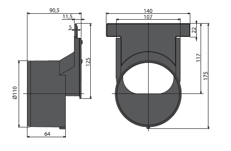 Используется для горизонтального подключения стока с диаметром трубы Ø110 мм
