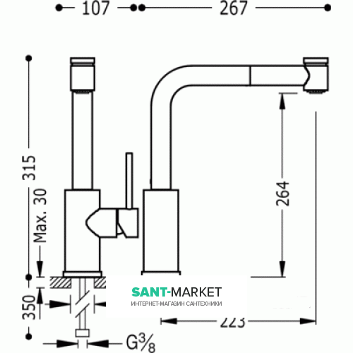 Смеситель для кухни с выдвижной лейкой Tres Max однорычажный 162438