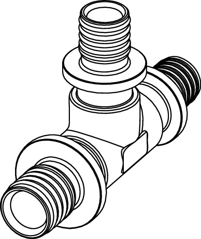 1) Тройник 90° редукционный TECE TECEflex 20х16х20 бронза