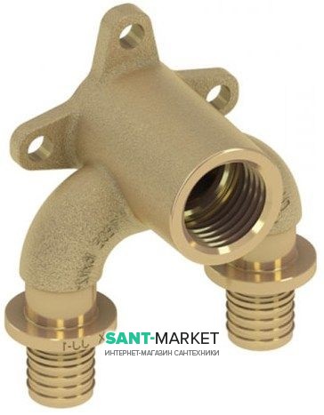 Тройник угловой с настенным креплением TECE TECEflex 16x1/2x16 закругленный латунь 708504