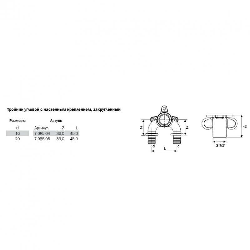 Тройник угловой с настенным креплением TECE TECEflex 20х1/2"х20