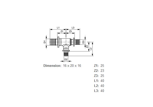 Тройной резьбовой фитинг TECE TECEflex 90° редукционный 16х20(18)х16 латунь 760504