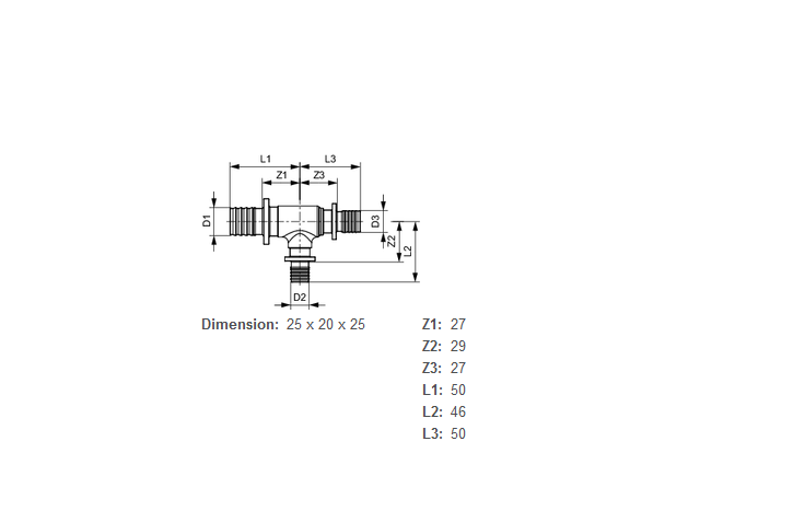 Тройной резьбовой фитинг TECE TECEflex 90° редукционный 25х20(18)х25 латунь 760515