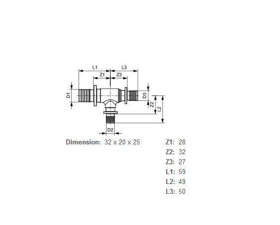 Тройной резьбовой фитинг TECE TECEflex 90° редукционный 32х20(18)х25 латунь 760518