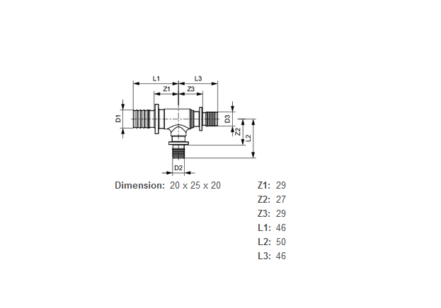 Тройной резьбовой фитинг TECE TECEflex 90° редукционный 20(18)х25х20(18) латунь 760521