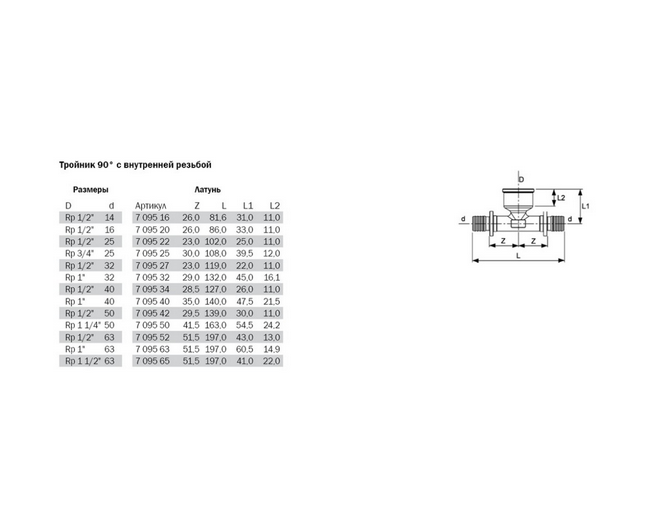 Тройной резьбовой фитинг TECE TECEflex 90° с внутренней резьбой 32х1"х32 латунь 709532