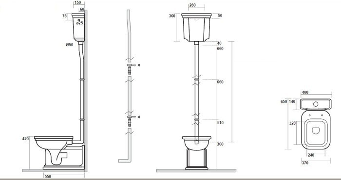 - Сливная труба для высокого бачка