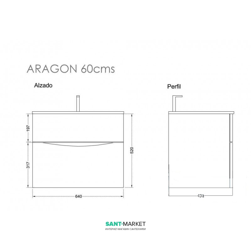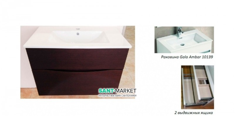 Тумба Bretta Aragon с раковиной Gala Ambar 64х43.3х52 венге SM0160WN+ G1014001