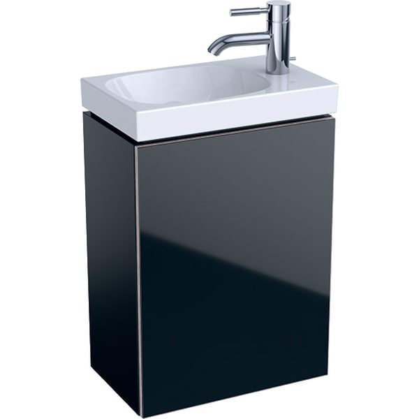 Тумба для раковины Geberit Acanto с одной дверью и сифоном ДСП черный матовый/черное глянцевое стекло 500.607.16.1