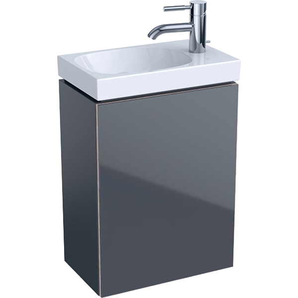 Тумба для раковины Geberit Acanto с одной дверью и сифоном ДСП лава матовый /лава глянцевое стекло