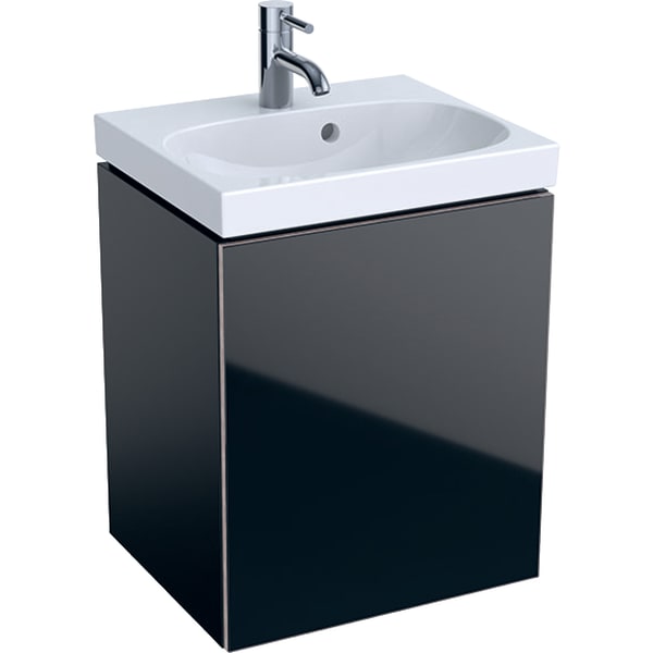 Тумба для раковины Geberit Acanto с одной дверью и сифоном ДСП черный матовый/черное глянцевое стекло