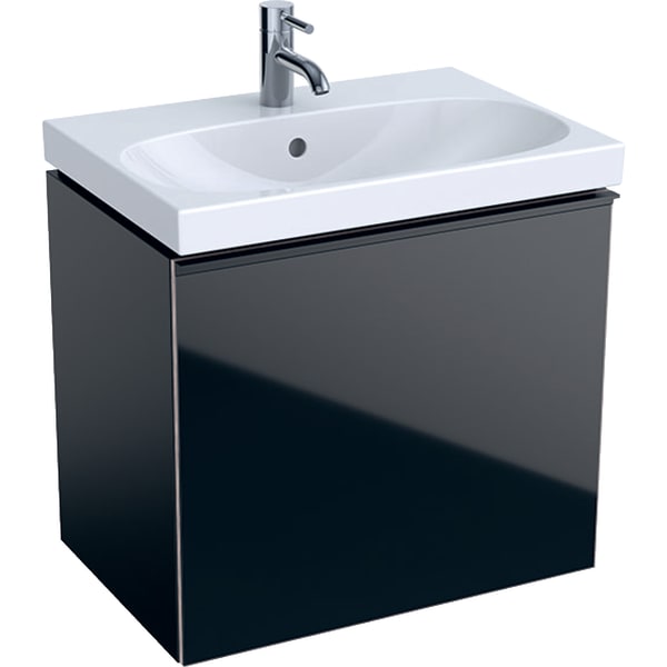 1) Тумба для раковины Geberit Acanto с укороченным вылетом ДСП черный матовый/черное глянцевое стекло