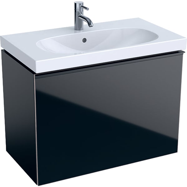 1) Тумба для раковины Geberit Acanto с укороченным вылетом ДСП черный матовый/черное глянцевое стекло