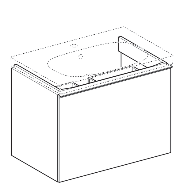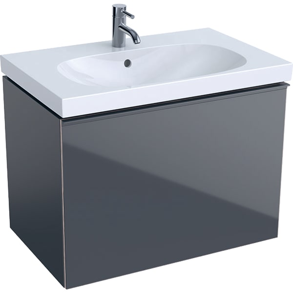 1) Тумба для раковины Geberit Acanto с выдвижным и внутренним выдвижным ящиком ДСП лава матовый/лава глянцевое стекло
