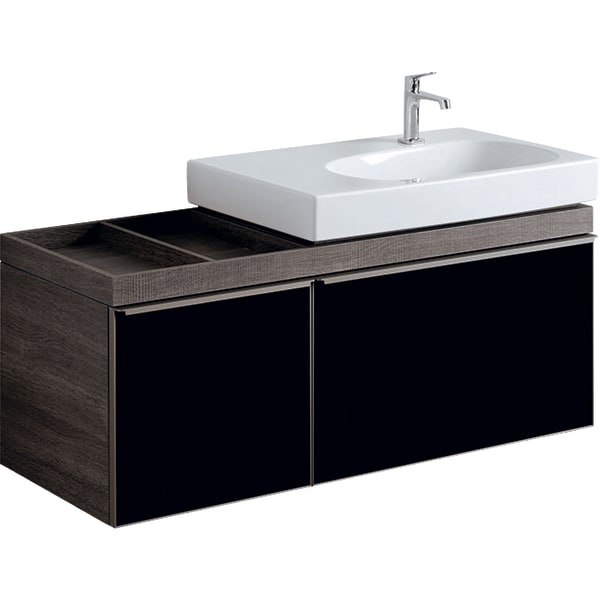 Тумба для раковины Geberit Citterio с двумя выдвижными ящиками и полкой слева ДСП черное глянцевое стекло/серо-коричневый дуб 500.563.JJ.1