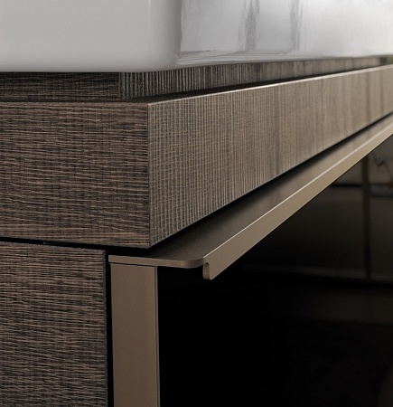 1) Тумба для раковины Geberit Citterio с одним выдвижным ящиком ДСП черное глянцевое стекло/серо-коричневый дуб