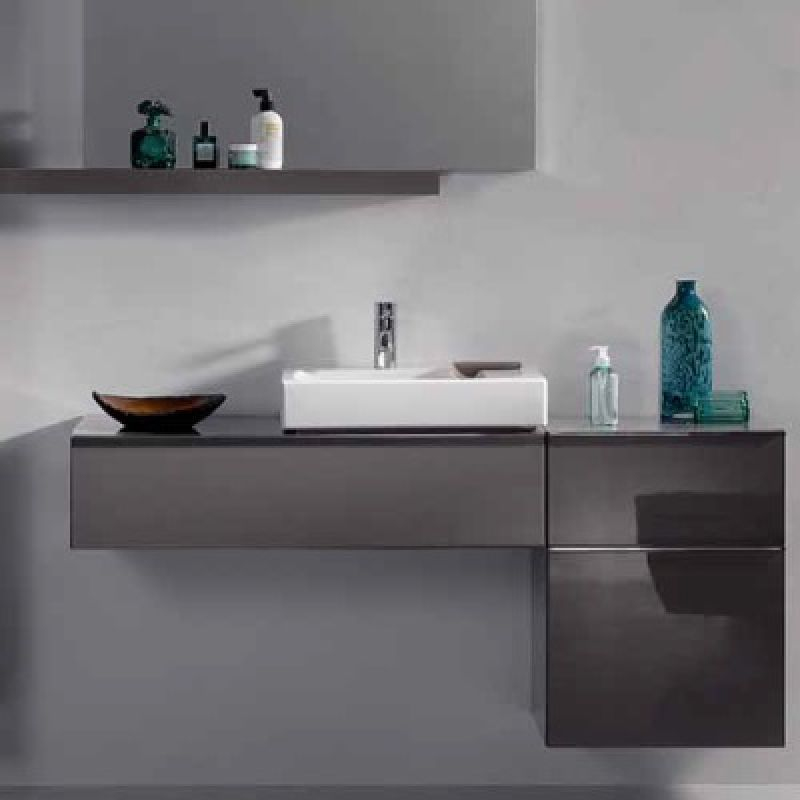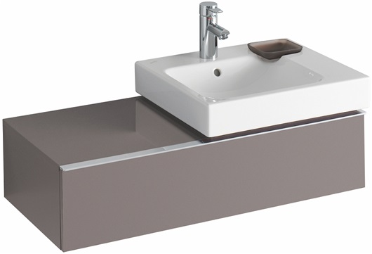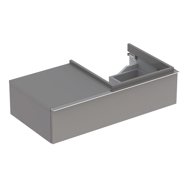 1) Тумба для раковины Geberit iCon с одним выдвижным ящиком и полкой слева ДСП платиновый/высокоглянцевое покрытие