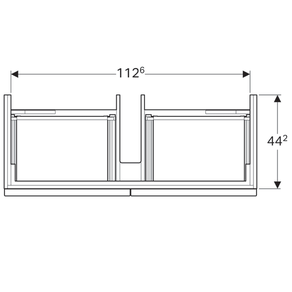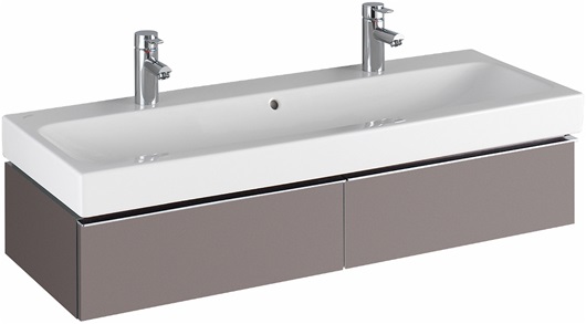 1) Тумба для раковины Geberit iCon шириной от 120 см с двумя выдвижными ящиками ДСП платиновый/высокоглянцевое покрытие