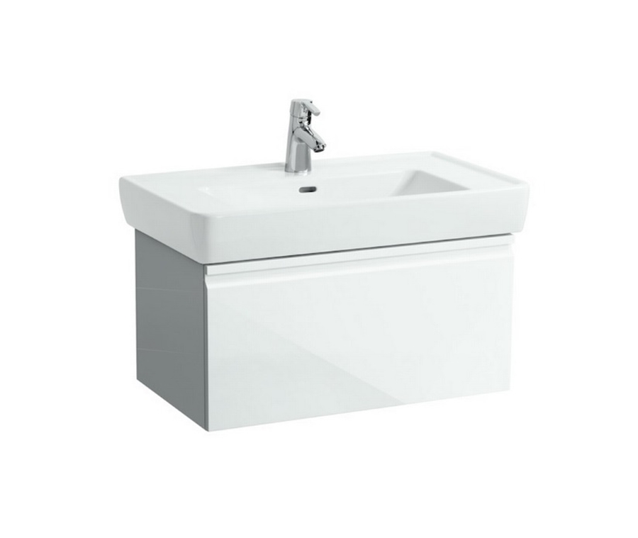 1) Тумба для раковины Laufen Pro А подвесная ДВП белый глянцевый
