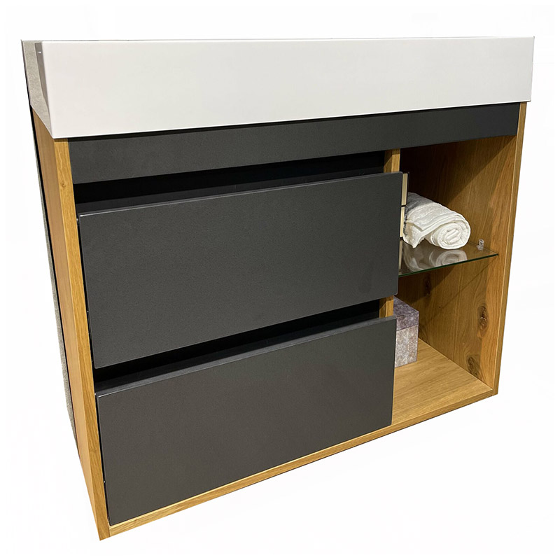 Тумба Fancy Marble Trinidat 80х50 см с раковиной Shelly шпон серый/дерево