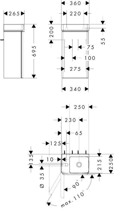 Тумба Hansgrohe Xelu Q с раковиной 36х26,5 см петли слева МДФ матовый серый 54363670