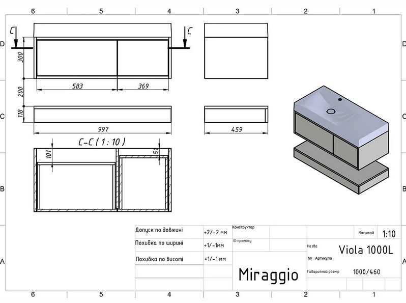 Тумба Miraggio Duo с раковиной Viola 1000 L МДФ белый/серый 8814985