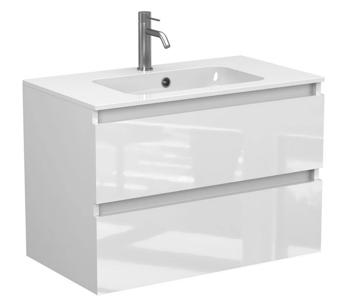 Тумба Miraggio Natura с раковиной Della 800 МДФ белый глянцевый