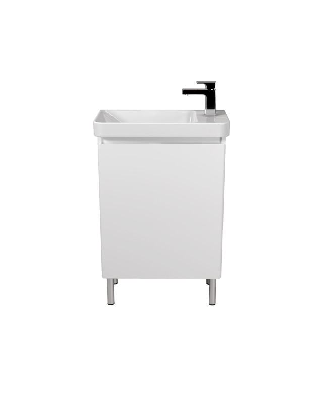 Универсальная, компактная и современная модель для обустройства небольшой ванной комнаты. Благодаря ширине 55 см она идеально вписывается даже в тесное пространство, в то же время обеспечивая достаточно места для хранения необходимых вещей. Универсальная конструкция позволяет выбрать между напольным и подвесным монтажом именно то, что нужно для адаптации к интерьеру вашей ванной.
