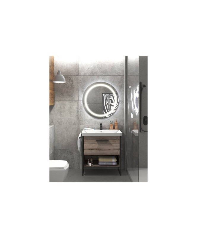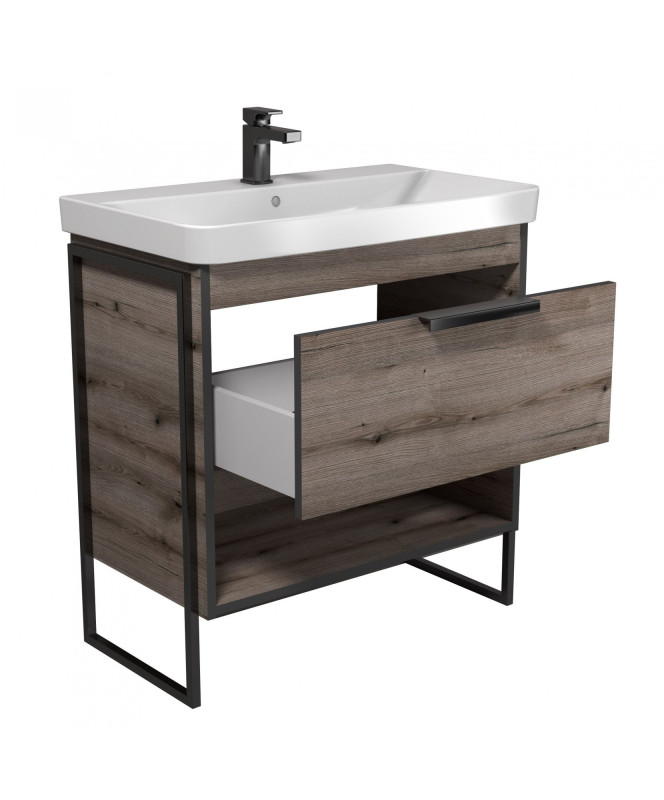Готов к использованию, собран и готов к установке. В комплекте уже включен прямоугольный умывальник, гармонично сочетающийся с тумбой по размерам и создающий единый стильный образ.