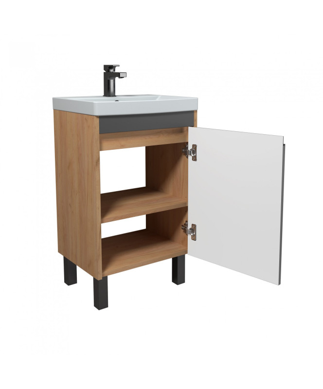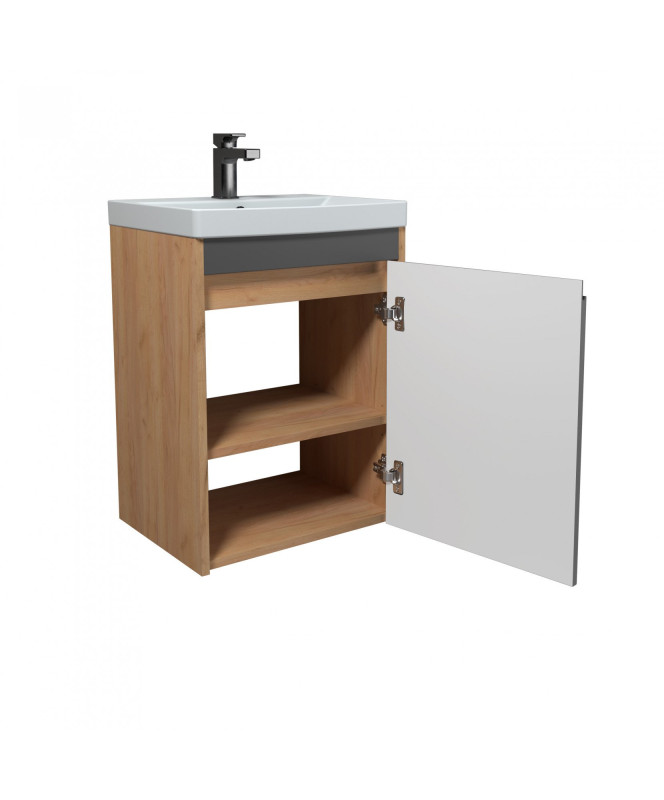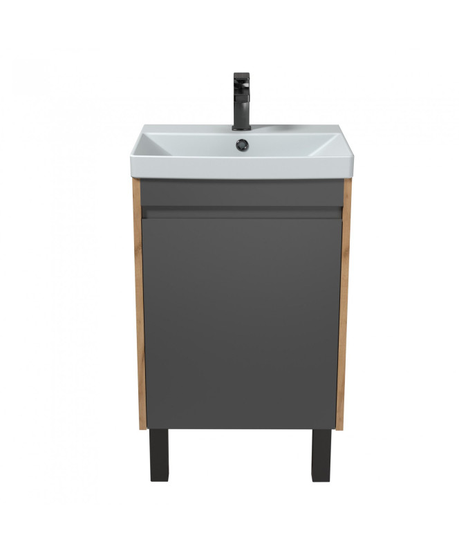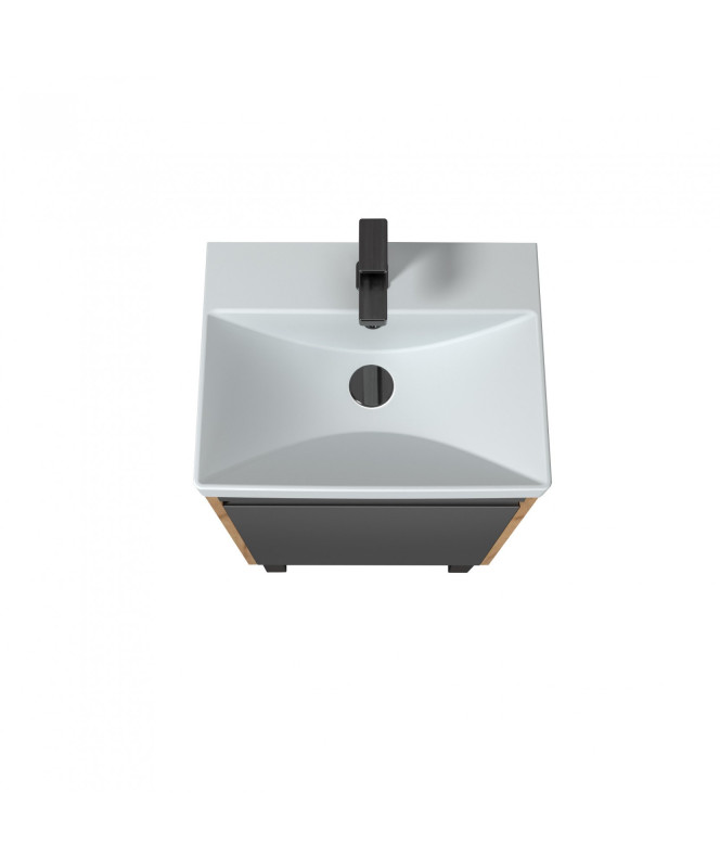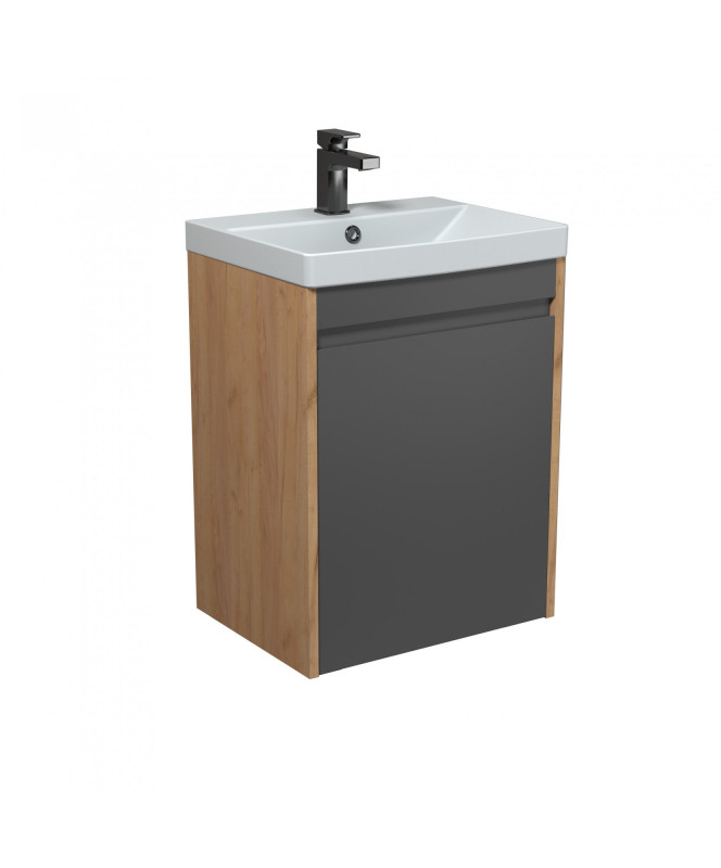 Тумба Мойдодыр Olive 50-U с раковиной Sempre ДСП/МДФ графит матовый/дуб крафт 00-0008273