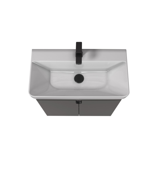 Simple Graphite — компактная и стильная тумба с раковиной, которая прекрасно дополнит современную ванную комнату. Универсальная модель подходит как напольному, так и подвесному монтажу. Благодаря глубине, изделие удобно размещается даже в небольших помещениях.