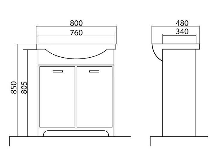 Тумба напольная Аквародос Классик 2019 80 см с раковиной New Klasik ДСП/МДФ белый